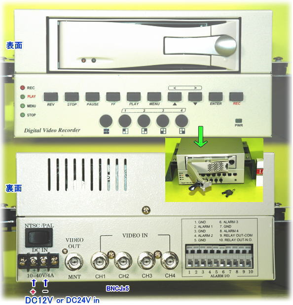 DC12V/DC24V駆動,車載仕様DVR SA-48364outDVR録画機 (48364out)(HDD無し)(別売5A,ACアダプター使用でAC100Vでも使用可)