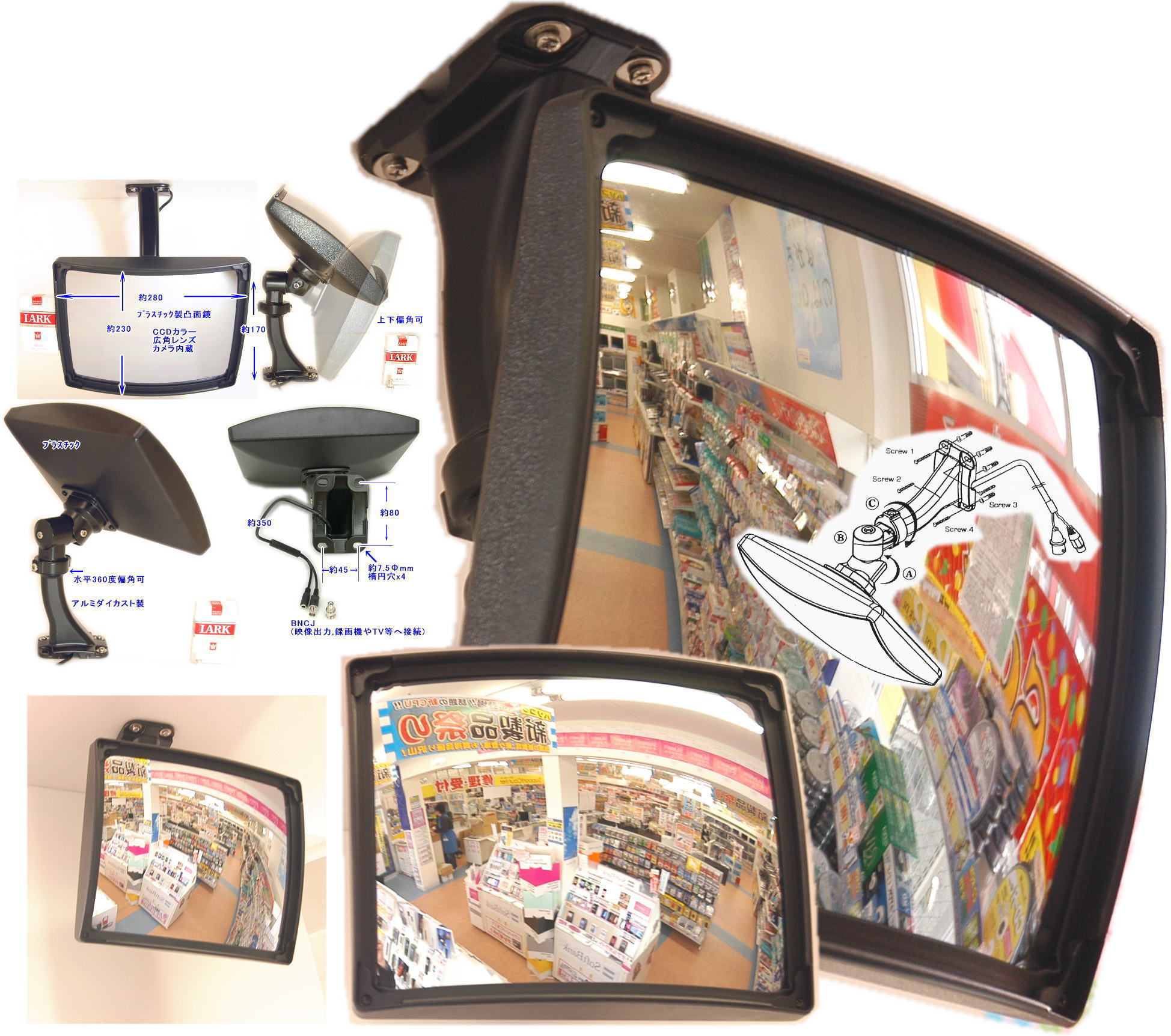 ●仕様 イメージセンサー 1/4インチ白黒CCD 総画素数27万画素/有効画素数25万画素 水 平 解 像 度 420TV本 最小被写体照度 0.05LUX(F=2.0) S/N比 50dB レンズ:f=3.7mm 画角:水平約60°垂直約45° ビデオ信号出力 1.0Vp-p 75オ-ム (RCAJ) マイク内蔵 (RCAJ) 信 号 方 式 EIA オートシャッタースピード:1/60〜1/100000sec 電 源 DC9〜12V(センタ-+)
