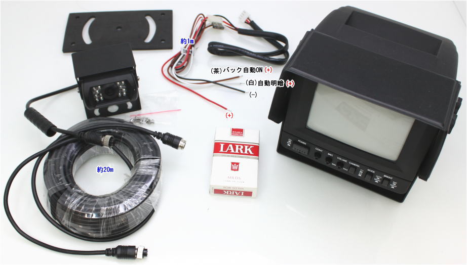 (防水カメラ)(水中不可) *1/3インチ白黒 赤外線照射内蔵CCDカメラ *超高感度防雨集音マイク内蔵 *白黒27万画素 *最低照度:0.3LUX F=2.0 *特殊レンズ: f=3.6mm *画角:水平約96度,垂直約76度 カメラより約3m離れて水平約5.4m幅が映ります *カメラは錆びないアルミダイキャスト製 *解像度:420TVライン *赤外線LED:6個使用 *照射範囲:約2〜3m照射 *シャッタースピード自動:1/60〜1/100000sec *温度範囲: -25度〜+85度 *電源: DC12V(モニターより定電圧供給) *消費電流:90mA〜180mA(約2.5W) *サイズ:105Wx65Hx65D *重量:約370g, オールアルミ製 注意・・カメラコードの接続部は必ず 防水テープ(48458)¥560を巻いてください (モニター) *白黒5.5インチ *電源:DC12V〜DC24V自動入力切替式 *音声出力スピーカー内蔵 *左右反転スイッチ付き *水平解像度:550TVライン *温度範囲: -20度〜+55度 *モニタサイズ:約177wX122hX191dmm *重量:約1.5Kg *ヒユ-ズ:2A(約12W) *付属カメラ延長防水コード:20m *日本大手自動車メーカーM社へ OEM供給してます優良製造メーカー製です。 |