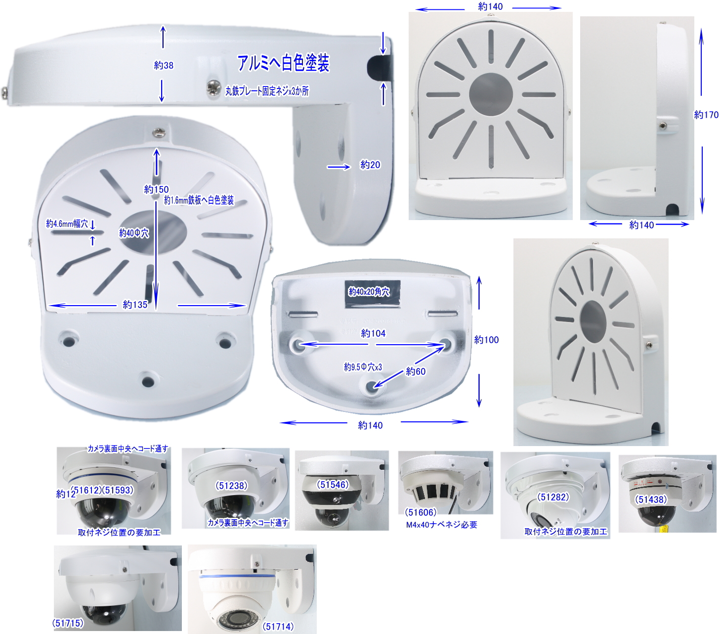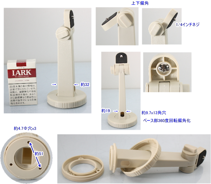 | 下記カメラ取り付け金具でカメラ取り付けネジは全て1/4インチを使用してます |