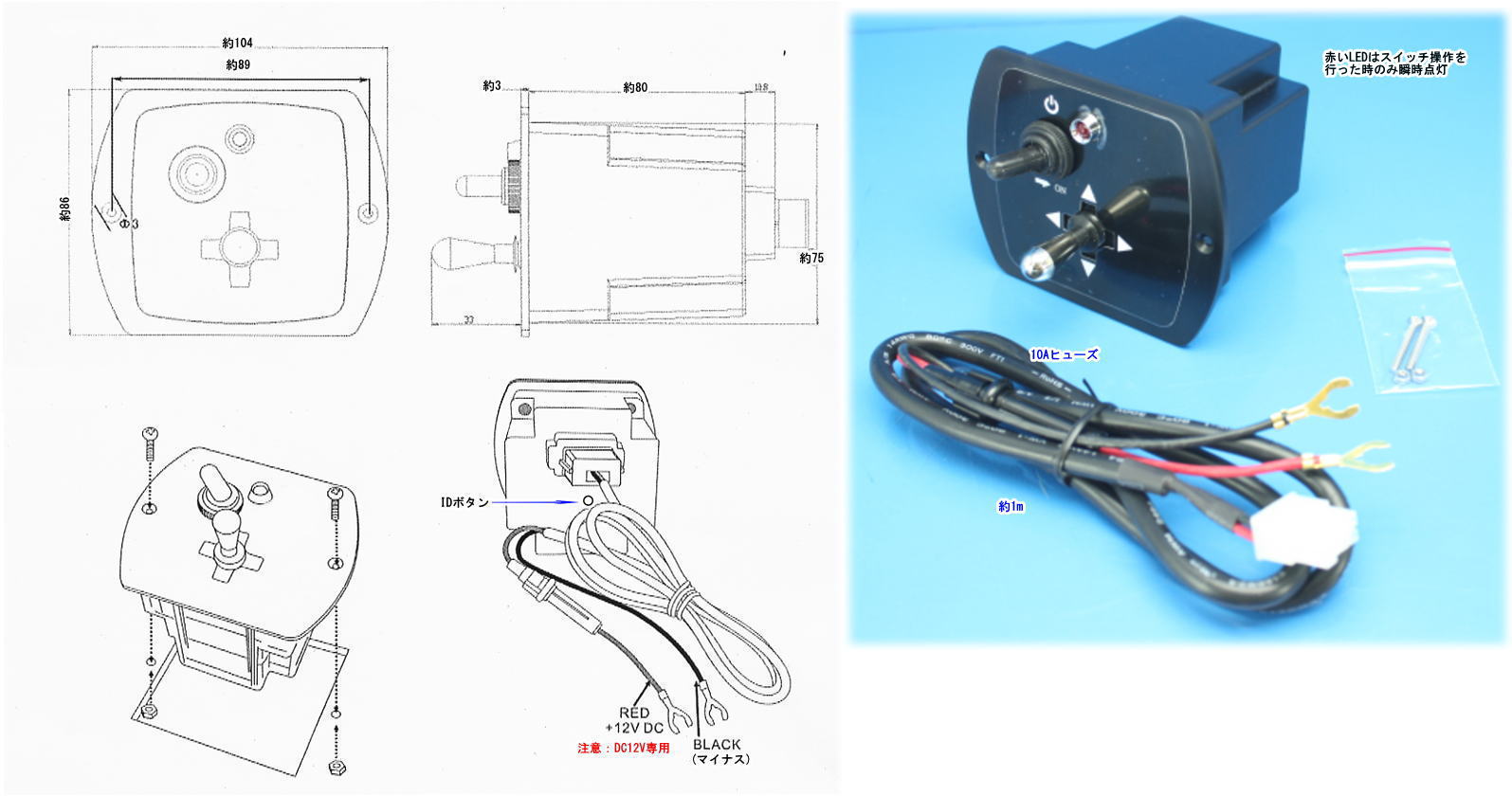 (海上防水仕様) ボルト固定/マグネット固定両用タイプ, 2スピード ジョイスティック有線式リモコン サーチライトセット DC12V用55Wハロゲン球(H3)、 (50417) *水平約440度(約29/52秒) *垂直約90度(約8/14秒) (但し電源電圧で変化します)